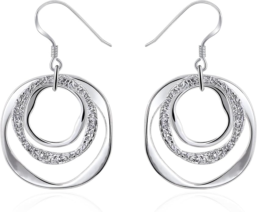 Cercei statement cu design de cercuri concentrice decorați cu cristale. Combinația de inele netede și pavate creează un efect vizual captivant. Realizați din argint lucios, acești cercei atârnători adaugă eleganță oricărui look. Mișcarea naturală a cerceilor creează jocuri frumoase de lumină. Perfecți pentru evenimente elegante sau pentru a transforma ținutele de zi. O alegere excelentă pentru femeile care apreciază bijuteriile statement clasice.